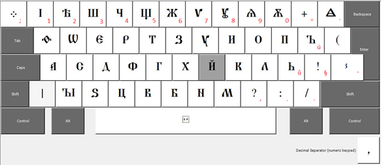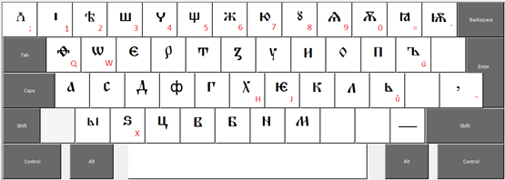 Jedná se o softwarový nástroj, který umožní přidat staroslověnské (cyrilské) rozložení kláves do systému Windows. Rozložení je kláves je vytvořeno na základě české klávesnice a je tak pro českého uživatele intuitivně použitelné. Vedle základní sady znaků staroslověnské cyrilice umožňuje zápis řady grafických variant a speciálních znaků a nadřádkových písmen, což z této klávesnici vytváří vhodný nástroj pro vědecký přepis staroslověnštiny a tvorbu edic staroslověnských a církevněslovanských textů.